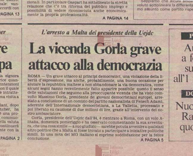 Mi lasciarono qualche minuto per riflettere. In fondo l’atto di solidarietà e di denuncia era stato compiuto e la nostra presenza a Malta aveva già ottenuto un significato. Nel mio intervento avevo parlato del diritto dei giovani alla libera scuola, dell’Unione Europea e del suo allargamento, della libera circolazione di idee e persone, del contributo dei Paesi mediterranei alla pace e alla costruzione di un’Europa più solidale. La stampa di governo, infatti, ne aveva dovuto parlare per evidenziare le ragioni dell’arresto.