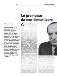 Il settimanale di CL, «II Sabato» ha voluto concludere da solo il ''caso Lazzati-Rosa Bianca" con un pezzo a cui ha dato poco rilievo tipografico ed ancor meno dal punto di vista della riflessione. È chiuso, forse un caso ma è bene fare il punto sulle premesse che, ne siamo certi torneranno in futuro a favorire altri errori di valutazione storica come quello di cui tutta la stampa e non solo cattolica si è occupata a proposito del presunto "protestantesimo" del Rettore della Università Cattolica.