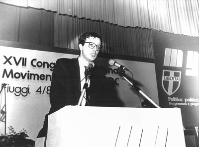 Nel messaggio di Scotti ai giovani DC il senso della ricerca di una nuova dimensione planetaria della politica. I valori più alti della cultura cattolica, sinonimo di pace e di democrazia. La necessità di coniugare speranze e realismo.