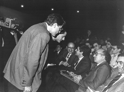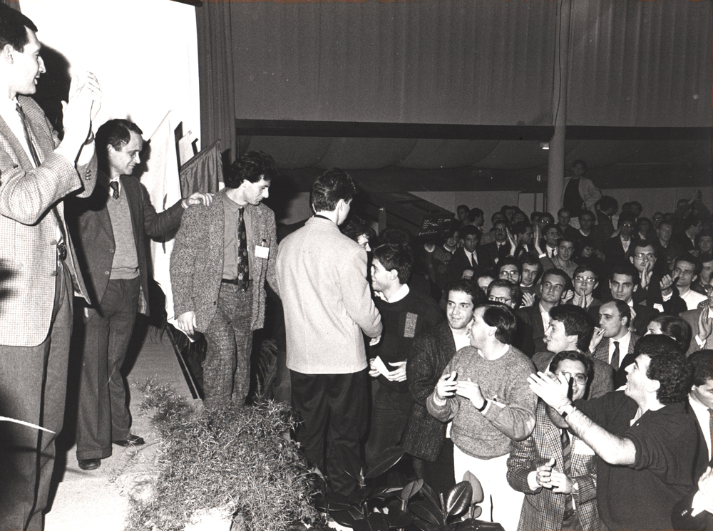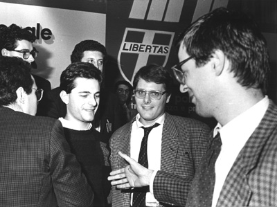 Fabio Petroni, Ciriaco De Mita, Renzo Lusetti (in piedi), Stefano Sandroni (di spalle)