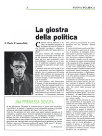 L'articolo di fondo, scritto dal Presidente del C.N. del Movimento Giovanile dc, Luca Danese, in occasione della seconda festa nazionale dei giovani dc, "GI0'2 BOAT" conserva tutta l'attualità del momento e presenta una riflessione efficace sui risultati e le aspettative del MG sorto a Maiori.
