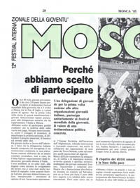Una delegazione di giovani dc per la prima volta assieme alle altre organizzazioni giovanili italiane, partecipa unitariamente al festival mondiale della gioventù. Il valore di una testimonianza politica concreta.