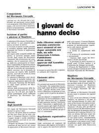 Le elezioni amministrative svoltesi nel nostro Paese nel maggio del 1985, hanno portato alla ribalta un vero e proprio movimento giovanile di amministratori locali: ben 30.000 i candidati della DC sotto i ventisette anni, di cui oltre un terzo è stato eletto.