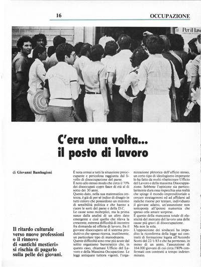 L'opposizione dei sindacati ha impedito la riconferma della legge sui contratti di formazione legata all'Accordo Scotti del 22/1/83 e che ha permesso, in meno di un anno, l'assunzione di 164.000 giovani di cui circa 1'80% confermati con contratti a tempo indeterminato.