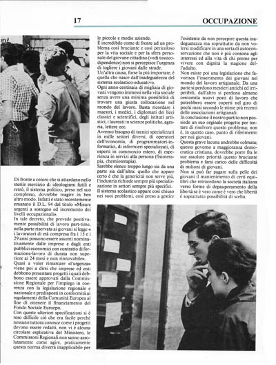 In conclusione il nostro partito non possiede un suo originale progetto per tentare di risolvere questo problema; non è, in questo caso, punto di riferimento per noi giovani.