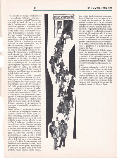 È su questa cultura che – al di là della liquidazione della Casmez o dei piani del Governo – deve giocarsi il futuro del Mezzogiorno: un futuro che non conosce alternative ad un Sud che, se non potrà essere una realtà integrata socio-economicamente nel tessuto della nazione, non mancherà di operare da «palla al piede» per l'intero Paese.