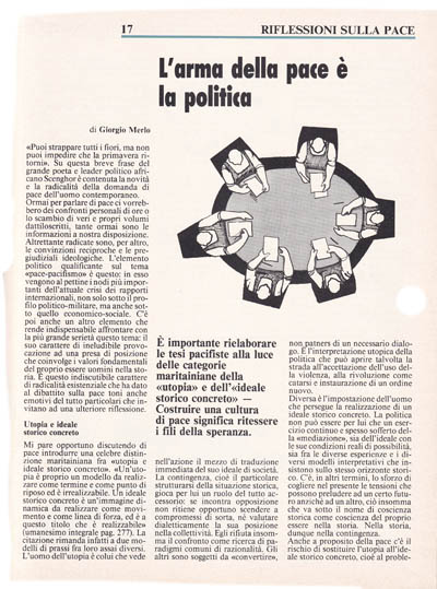 Anche a proposito della pace c'è il rischio di sostituire l'utopia all'ideale storico concreto, cioè al problema politico di mediare la volontà di pace con le condizioni storiche in atto.