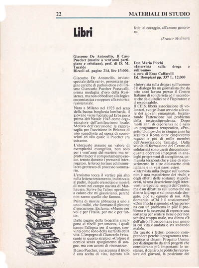 «Intervista sulla droga e sull'uomo» è il dialogo fra un giornalista che da otto anni lavora presso il Centro Italiano di solidarietà ed il sacerdote che da quindici ne è I ispiratore e il responsabile.