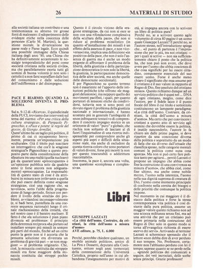 Sul n. 9-12 di «Ricerca», il quindicinale della FUCI, troviamo due interventi sul tema del riarmo: «Per una critica della cultura strategica», di Pierpaolo Pignocchino e «Pace e potere: le regole del gioco» di Giorgio Armillei.