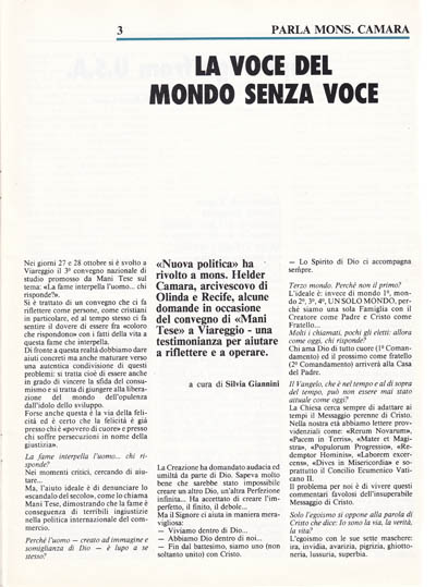 Nei giorni 27 e 28 ottobre si è svolto a Viareggio il 3° convegno nazionale di studio promosso da Mani Tese sul tema: «La fame interpella l'uomo... chi risponde?».