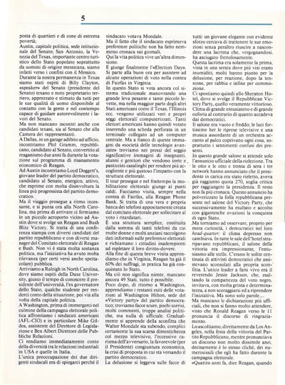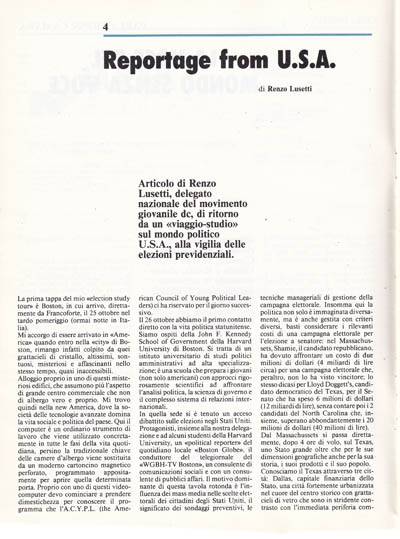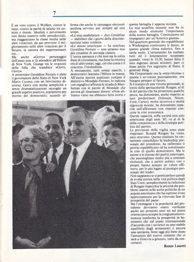 Non sappiamo se si potrà parlare quindi di svolta storica nella vita politica degli Stati Uniti, semplicemente la rielezione di Reagan rispecchia la priorità dei problemi interni nelle scelte politiche di un popolo americano che ha espresso il suo apprezzamento per la ritrovata fase di prosperità del paese.