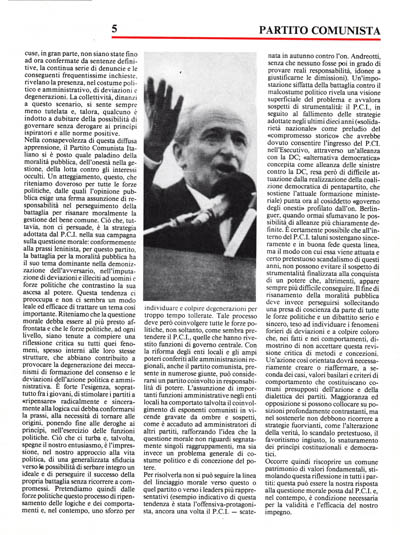 Occorre quindi riscoprire un comune patrimonio di valori fondamentali, stimolando questa riflessione in tutti i partiti: questa può essere la nostra risposta alla questione morale posta dal P.C.I. e, nel contempo, è condizione necessaria per la validità e l'efficacia del nostro impegno.