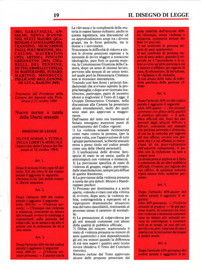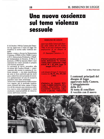 Il 18 Ottobre 1984 la Camera dei Deputati ha approvato il testo di legge che modifica le norme sulla violenza sessuale.