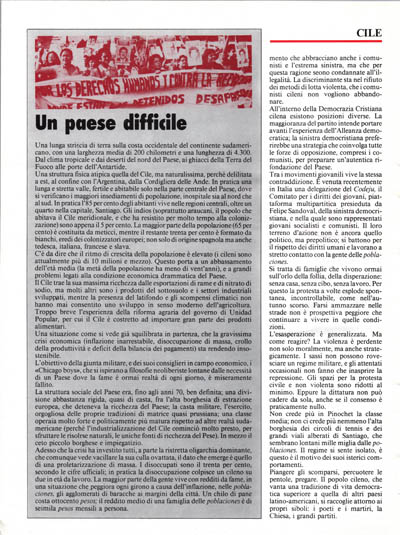 All'interno della Democrazia Cristiana cilena esistono posizioni diverse. La maggioranza del partito intende portare avanti l'esperienza dell'Alleanza democratica; la sinistra democristiana preferirebbe una strategia che coinvolga tutte le forze di opposizione, compresi i comunisti, per preparare un'autentica rifondazione del Paese.