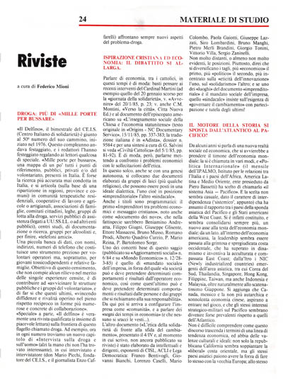 «Speciale» a parte, «II delfino» è veramente una rivista qualificata (e insieme di piacevole lettura) sulla frontiera di questo flagello chiamato droga. Ad esempio, ora in ogni numero troviamo un nuovo capitolo di «Intervista sulla droga e sull'uomo» (alzi la mano chi non l'ha trovato interessante), in cui intervistato e intervistatore (don Mario Picchi, fondatore del CE.I.S., e il giornalista Enzo Caffarelli) affrontano sempre nuovi aspetti del problema-droga.