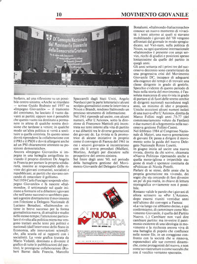 In giugno inizia ad uscire una nuova rivista, diretta da chi scrive, chiamata «Nuova Politica» ripensando anche a quella meravigliosa e irripetibile stagione di studi e speranze costituita da «Politica» di Nicola Pistelli.