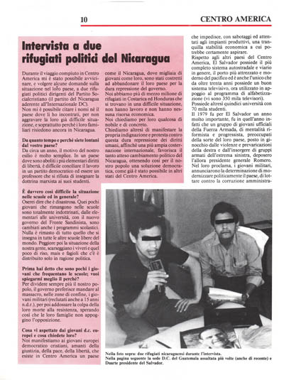 Durante il viaggi.ocompiuto in Centro America mi è stato possibile avvicinare, e volgere alcune domande sulla situazione nel Loro paese, a due rifugiati politici dirigenti del Partito Socialcristiano (il partito del Nicaragua aderente all'Internazionale DC).