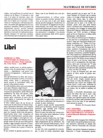 Bernabei e Giuntella dimostrano con questo bel libro che non è così e che essere cristiani nel mondo e per il mondo, non significa essere del mondo. La Pira fu così poco «del mondo» nel suo tempo, che le sue idee, le sue speranze, sono ancora le nostre.
