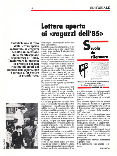 Molti di noi hanno subito per anni, quando era pericoloso definirsi ad alta voce un giovane dc, l'arroganza e la violenza di quelli che pretendevano di essere gli unici portavoce del movimento studentesco, gli unici eredi delle ansie e dei bisogni dei giovani del '68.