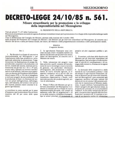 Ritenuta la straordinaria necessità ed urgenza di adottareimmediate misure per la promozione e losviluppo della imprenditorialitàgiovanile nel Mezzogiorno;