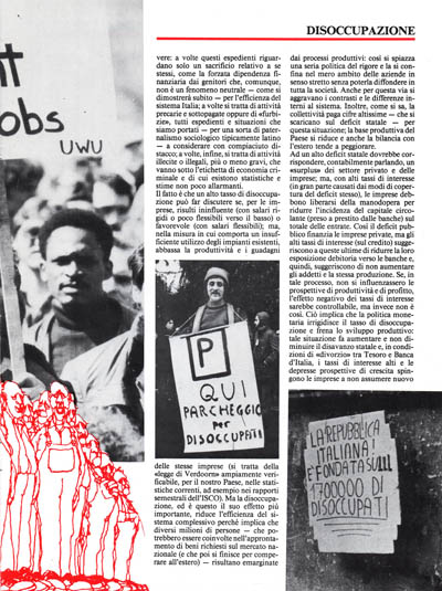Il fatto è che un alto tasso di disoccupazione può far discutere se, per le imprese, risulti ininfluente (con salari rigidi o poco flessibili verso il basso) o favorevole (con salari flessibili); ma, nella misura in cui comporta un insufficiente utilizzo degli impianti esistenti, abbassa la produttività e i guadagni delle stesse imprese (si tratta della «legge di Verdoom» ampiamente verificabile, per il nostro Paese, nelle statistiche correnti, ad esempio nei rapporti semestrali dell'ISCO). Ma la disoccupazione, ed è questo il suo effetto più importante, riduce l'efficienza del sistema complessivo perché implica che diversi milioni di persone – che potrebbero essere coinvolte nell'approntamento di beni richiesti sul mercato nazionale (e che poi si finisce per comperare all'estero) – risultano emarginate dai processi produttivi: così si spiazza una seria politica del rigore e la si confina nel mero ambito delle aziende in senso stretto senza poterla diffondere in tutta la società. Anche per questa via si aggravano i contrasti e le differenze interni al sistema. Inoltre, come si sa, la collettività paga cifre altissime – che si scaricano sul deficit statale – per questa situazione; la base produttiva del Paese si riduce e anche la bilancia con l'estero tende a peggiorare.