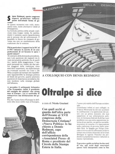 Guardiamo infatti ai suoi colleghi: in Francia Mitterand ha dovuto accettare la coabitazione e la·spartizione dei poteri con un primo ministro che non appartiene al suo schieramento politico, in Gemania federale Kohl ha i suoi problemi con una certa opposizione interna al suo partito, un partito socialdemocratico in crescita e le ripercussioni sulla coalizione di governo dello scandalo flick. In Spagna poi Felipe Gonzalez si trova a dover affrontare in breve tempo una tornata elettorale ed in Gran Bretagna la signora Thatcher sta perdendo la popolarità mentre i laburisti si stanno riprendendo.