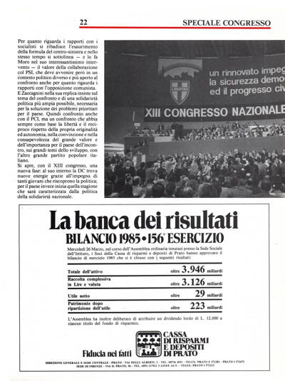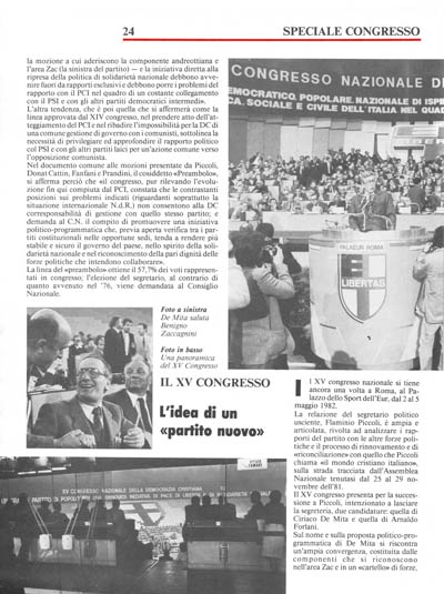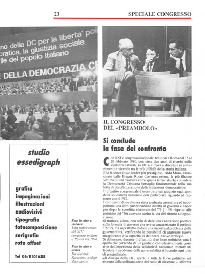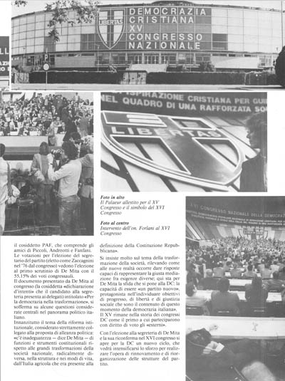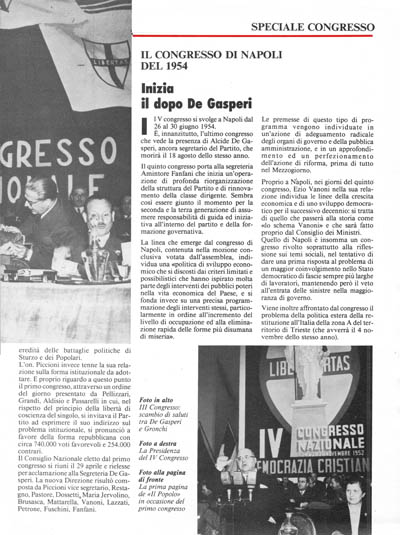 Vogliamo sottolineare, quindi, che la scelta da noi compiuta è dovuta solo a mancanza di spazio: siamo del tutto consapevoli, infatti, che in quanto ad importanza e ad interesse i congressi di un grande partito popolare, come è la DC, non possono mai essere giudicati di basso profilo.