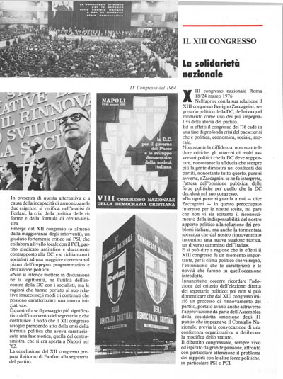 Si apre, con il XIII congresso, una nuova fase: al suo interno la DC trova nuove energie grazie all'impegno di tanti giovani che riscoprono la politica; per il paese invece inizia quella stagione che sarà caratterizzata dalla politica della solidarietà nazionale.