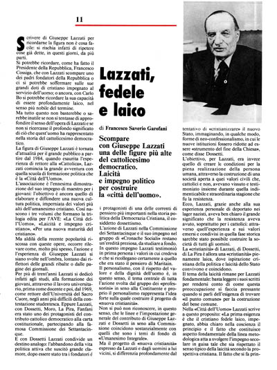La figura di Giuseppe Lazzati è tornata d'attualità per il grande pubblico a partire dal I 984, quando esaurita l'esperienza di rettore alla «Cattolica», Lazzati comincia la grande avventura con quella scuola di formazione politica che è la «Città dell'Uomo».