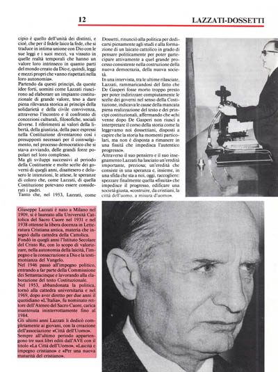 Ma tutto questo non basterebbe o sarebbe inutile se non si tentasse di approfondire il senso dell'opera di Lazzati e se non si ricercasse il profondo significato di ciò che quest'uomo ha rappresentato nella storia del cattolicesimo democratico.