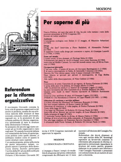 Nuova Politica, nei suoi due anni di vita, ha più volte trattato i temi delle mozioni presentate al XVII Congresso DC.