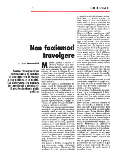 Son queste, in fondo, conseguenze di una dimensione troppo totalizzante dell'impegno politico. Questi anni '80 sembrano del resto caratterizzati dalla presenza di un identikit di «emergente», da imitare per andare sempre più avanti, come di colui che si dedica in modo totale al proprio impegno, sia politico, manageriale o quant'altro, sacrificando ogni spazio e tempo per la vita privata, per tutto ciò che èestraneo ad una «rampante» carriera.