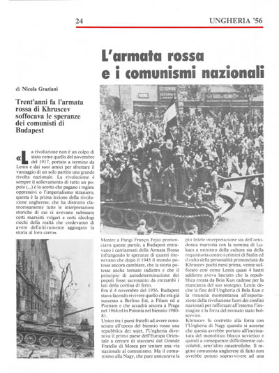«La rivoluzione non è un colpo di stato come quello del novembre del 1917, portato a termine da Lenin e dai suoi amici per sfruttare il vantaggio di un solo partito una grande rivolta nazionale. La rivoluzione è sempre il sollevamento di tutto un popolo(...) è lo scotto che pagano i regimi oppressivi o l'imperialismo straniero, questa è la prima lezione della rivoluzione ungherese, che ha distrutto clamorosamente tutte le interpretazioni storiche di cui ci avevano subissato certi marxisti volgari e certi ideologi ciechi della realtà che credevamo di avere definitivamente aggiogato la storia al loro carro».