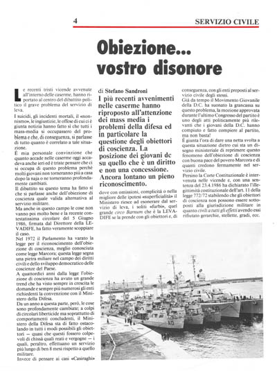 Invece di pensare ai casi «Casiraghi» dove con omissioni, complicità o nella migliore delle ipotesi «superficialità» il Ministero riesce ad esonerare dal servizio di leva, i soliti «furbi», quel grande circo Barnum che è la LEVADIFE se la prende con gli obiettori e, di conseguenza, con gli enti preposti al servizio civile degli stessi.