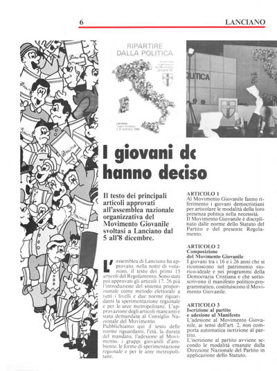 Al Movimento Giovanile fanno riferimento i giovani democristiani per articolare le modalità della loro presenza politica nella necessità.