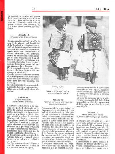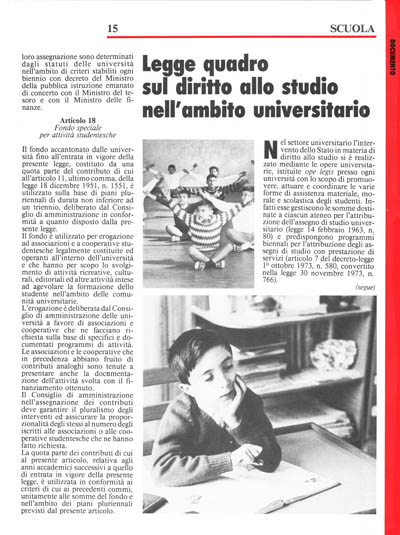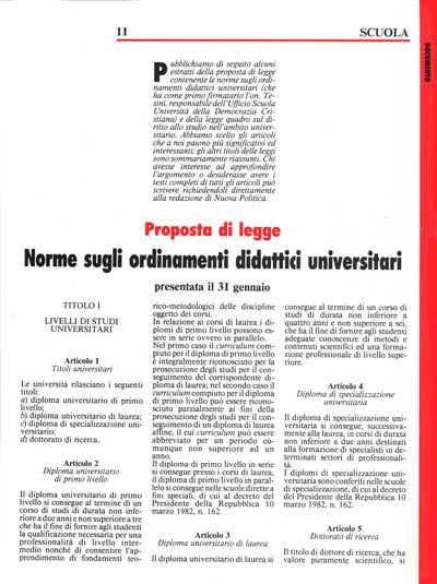 Pubblichiamo di seguito alcuni estratti della proposta di legge contenente le norme sugli ordinamenti didattici universitari (che ha come primo firmatario !'on. Tesini, responsabile dell'Ufficio Scuola Università della Democrazia Cristiana) e della legge quadro sul diritto allo studio nell'ambito universitario. Àbbiamo scelto gli articoli che a noi paiono più significativi ed interessanti; gli altri titoli delle leggi sono sommariamente riassunti. Chi avesse interesse ad approfondire l'argomento o desiderasse avere i testi completi di tutti gli articoli può scrivere richiedendoli direttamente alla redazione di Nuova Politica.