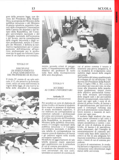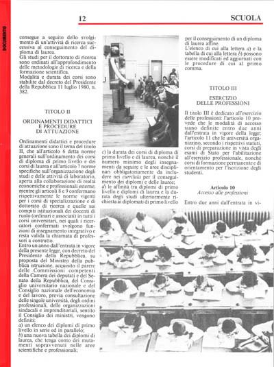 - una nuova tabella dei diplomi di laurea, che tenga conto dei mutamenti sopravvenuti nelle aree scientifiche e professionali;