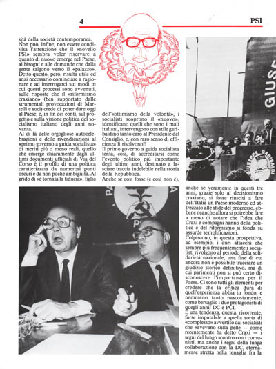 Al di là delle orgogliose autocelebrazioni e delle rivendicazioni al «primo governo a guida socialista» di meriti più o meno reali, quello che emerge chiaramente dagli ultimi documenti ufficiali di Via del Corso è il profilo di una politica caratterizzata da numerosi punti oscuri e da non poche ambiguità. Al grido di «è tornata la fiducia», figlia dell'«ottimismo della volontà», i socialisti scoprono il «nuovo», identificano quelli che sono i mali italiani, intervengono con stile garibaldino tanto caro al Presidente del Consiglio, e, con raro senso di efficienza li risolvono!!