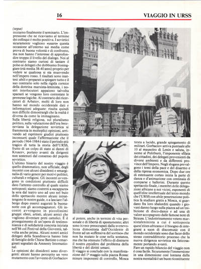 Ma tutto questo potrebbe avere anche esiti positivi se scuotesse la rassegnata e sonnolenta menalità dell'Ivan sovietico così come sta scuotendo quella degli intellettuali emarginati e oggi in via di riabilitazione: una graduale apertura comporta segnali di maggior flessibilità, maggior capacità critica, migliori opportunità di dialogo da cui è sempre poi difficile tornare indietro come se niente fosse successo. Sotto questo profilo, la sfida che si apre alle nuove generazioni dei giovani democristiani è altamente stimolant ed affascinante; merita dunque di essere raccolta con rinnovato impegno.