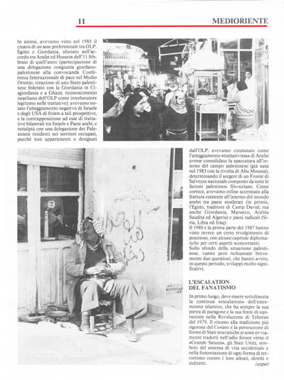 In primo luogo, deve essere sottolineata la continua «escalation» dell'estremismo islamico, che ha sempre la sua pietra di paragone e la sua fonte di ispirazione nella Rivoluzione di Teheran del 1979. Il ritorno alla tradizione più rigorosa del Corano e la perorazione di forme di Stati teocratiche si sono ovviamente tradotti nell'odio feroce verso il «Grande Satana», gli Stati Uniti, simbolo del sistema di vita occidentale e nella fomentazione di ogni forma di terrorismo contro i loro alleati, diretti e indiretti.