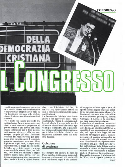 Far crescere una cultura di pace nel Paese significa testimoniare questa cultura con gesti concreti, seri, anche difficili che diano il segno di una comunità impegnata realmente per la pace, disposta anche a pagare un prezzo collettivo e personaie per questo ideale. L'obiezione di coscienza al servizio militare è un momento privilegiato, come il Convegno di Loreto ci ha ricordato, per dare questa testimonianza.