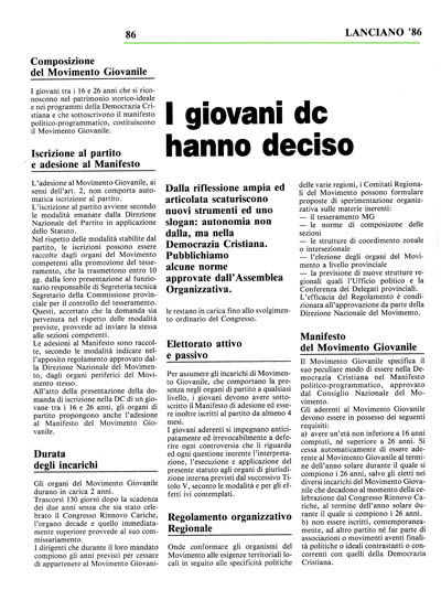 All'atto della presentazione della domanda di iscrizione nella DC di un giovane tra i 16 e 26 anni, gli organi di partito propongono anche l'adesione al Manifesto del Movimento Giovanile.