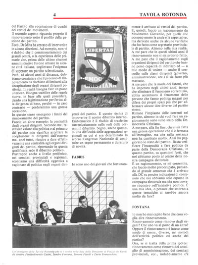 L'idea era quella di cominciare da una valutazione sul rinnovamento del Partito, che sembra essere il tema centrale dei dibattiti interni, da Zaccagnini – segretario – in poi, e sul quale vengono date le interpretazioni più svariate, sullo stato di attuazione, su quello che è stato fatto, su meriti e limiti di chi gestisce il partito.