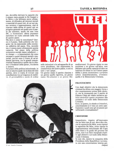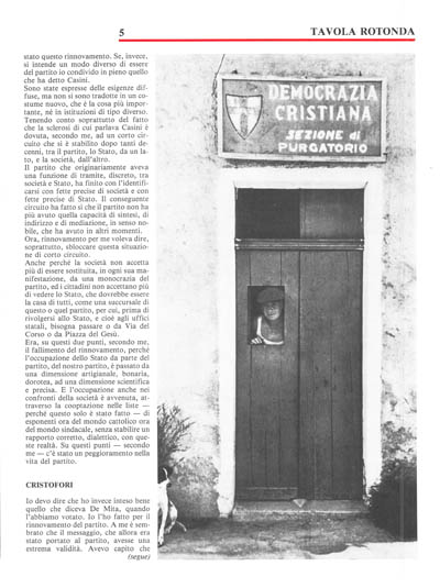 Io però credo anzitutto che ci sia una premessa sbagliata in quello che dicevi, perché teorizzare che la DC è stata negli anni recenti governata dal centro è non tener presente la realtà.