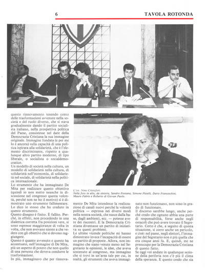 Io devo dire che ho invece inteso bene quello che diceva De Mita, quando l'abbiamo votato. lo l'ho fatto per il rinnovamento del partito. A me è sembrato che il messaggio, che allora era stato portato al partito, avesse una estrema validità. Avevo capito che questo rinnovamento tenendo conto delle trasformazioni avvenute nella società e del ruolo diverso, che si stava gradualmente dando il partito socialista italiano, nella prospettiva politica del Paese, consistesse nel dare della Democrazia Cristiana la sua immagine originale. Immagine fondata (e per me lo è ancora) sulla capacità di una politica ispirata alla solidarietà, che è l'elemento discriminante, rispetto a qualunque altro partito moderno, di tipo liberale, o socialista o socialdemocratico.