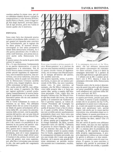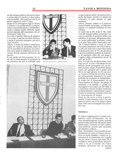 Poi, la questione delle aree, un'altra delle questioni che è venùta fuori a Chianciano. A Chianciano c'è stato un intervento abbastanza apprezzato, molto seguito, di Enrico De Mita, e anche molto condiviso all'interno della sinistra DC, che è quello del contestare questa schematizzazione che fa riferimento ai poli, prendendo spunto anche dalla realtà della cronaca politica di questi giorni, dove abbiamo sotto gli occhi una realtà abbastanza diversa, cioè il frantumarsi in segmenti diversi e sempre più isolati di queste famose aree.
