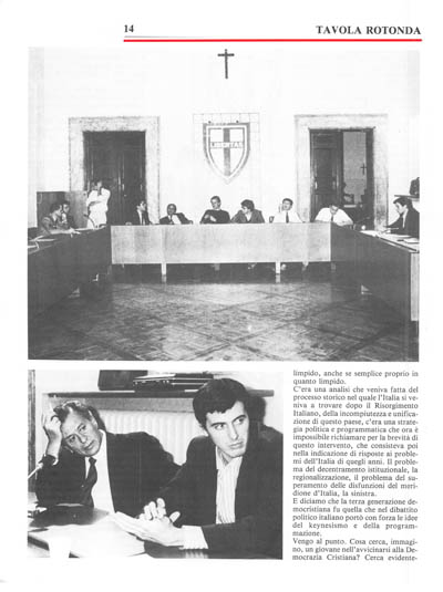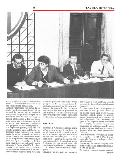 Da questa consapevolezza, secondo me, dovrebbe derivare la capacità che è sempre stata grande in De Gasperi e in Moro e che abbiamo perso ultimamente, di difendere gli interessi morali e materiali di questi ceti, di cui noi siamo cerniera e rappresentanza, cioè di ricavare dalla difesa di questi ceti un progetto generale nel quale tutto il paese sia costretto, anche chi non vota DC, a riconoscersi: allora possiamo esercitare un ruolo centrale nella vita di questo paese.