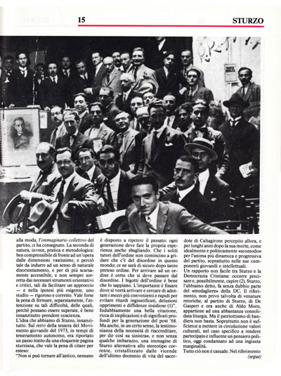 1 - La citazione era tratta da un'opera dell'immediato secondo dopoguerra, L'Italia e l'ordine internazionale, scritta da Sturzo in America e subito tradotta e pubblicata in Italia da Einaudi, nel 1946.