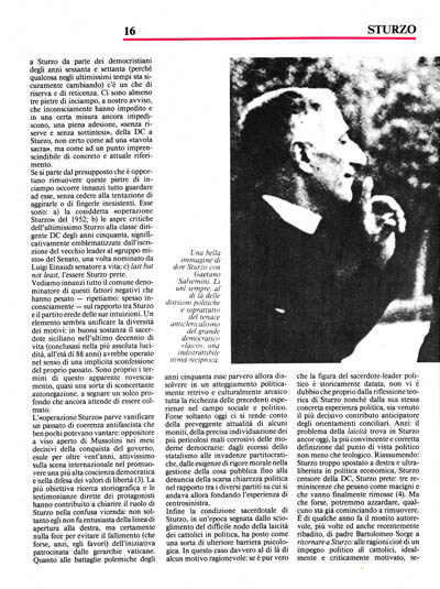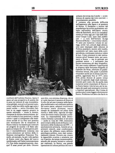 6 - G. GALLONI, Dopo la crisi del capitalismo riprende con forza la proposta dell'umanesimo personalista e comunitario, in «Politica oggi» febbraio 1987. Per ciò che riguarda il complesso rapporto sinistra democristiana- Sturzo va però ricordata anche l'attenzione per il pensiero sturziano che traspare dalle collezioni di «Cronache sociali», soprattutto sul tema della concezione del partito politico, ed oltre un decennio più tardi, in analoga prospettiva, la acuta riflessione su Sturzo di Nicola Pistelli.