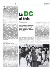 Tra presenza e mediazione, alla DC si propone oggi anche la strada di una nuova cultura da meditare ed assorbire.